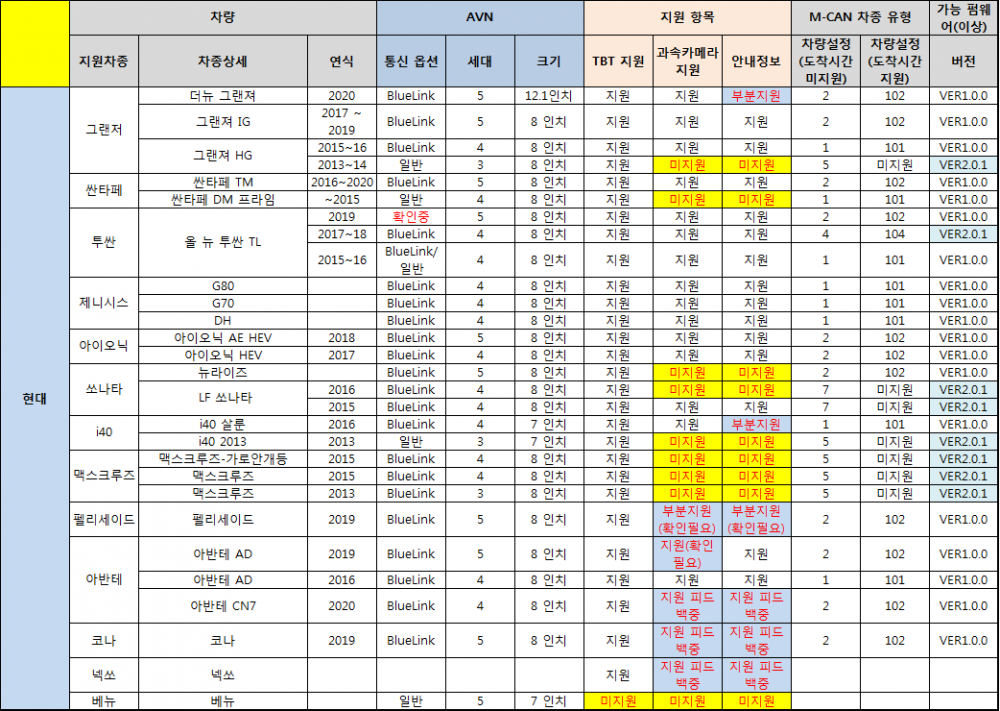 " 4세대 카니발 KA4는 M-CAN F.W 2.5.0 이상에서만 지원합니다. KA4 카니발은 기존 차량과 데이터와 다르기 때문에 안내의 오류가 있을 수 있고오류 발생시 추후 펌웨어 업데이트를 통하여 수정할 예정입니다."