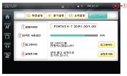 b. SD카드를 제품에 넣고, 환경 설정의 업그레이드를 누릅니다.