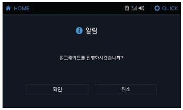 f. 메인메뉴 -> 설정 -> 시스템 업그레이드 -> 확인을 누릅니다.