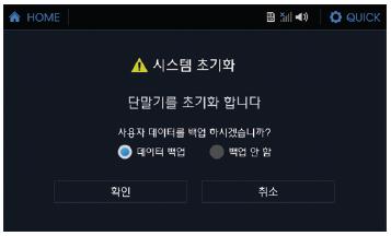 [소프트웨어 초기화] ![]() a. 단말기(제품)시스템은 데이터백업여부에 상관없이 초기화 됩니다. b. 사용자데이터 백업이란 맵(지니)에서 설정한 목적지 등 사용자 데이터를 말합니다. - 데이터 백업 : 맵(지니)의 사용자데이터의 백업을 진행합니다. - 백업 안함 : 맵(지니)의 사용자데이터의 백업을 하지 않습니다 ※ 참고 사항 ▪ 업그레이드 도중에는 Micro SD카드를 제품에서 빼거나 전원이 절대 꺼지지 않도록 주의하십시오. ▪ 업그레이드가 완료되면 사용하시던 모든 설정이 초기화 됩니다. ▪ Micro SD카드의 ‘SpeedNavi_GiNi’ 폴더는 내비게이션 사용시 필요하므로 삭제, 변경되지 않도록 유의하십시오. |