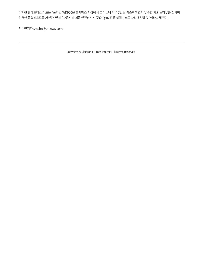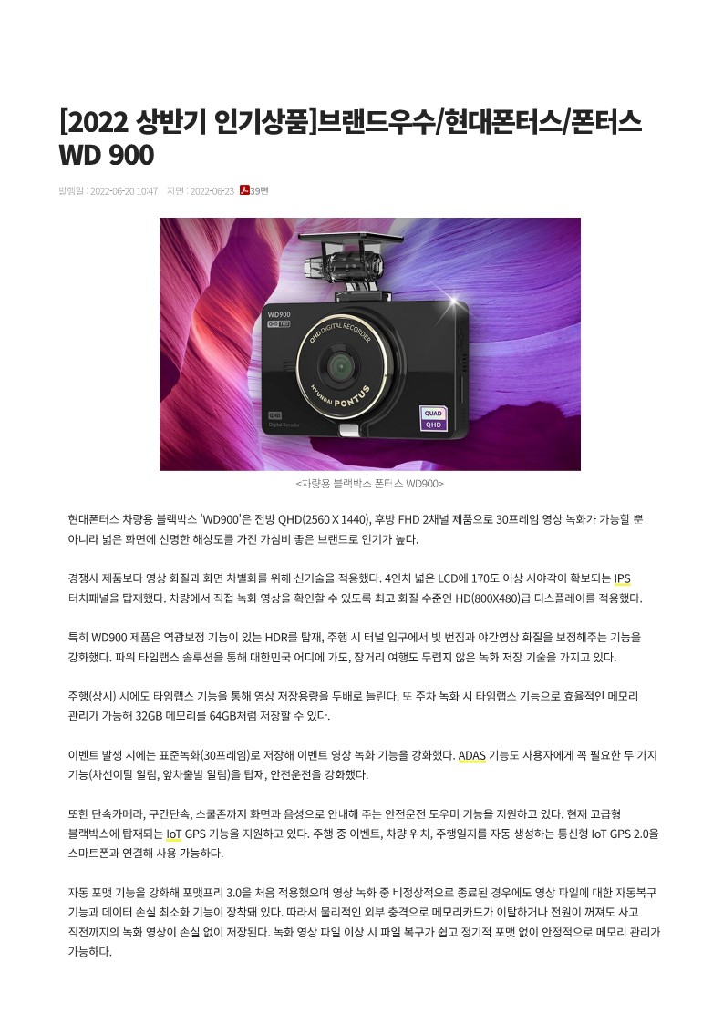 [언론보도] [2022 상반기 인기상품]브랜드우수_현대폰터스_폰터스 WD 900 - 전자신문
