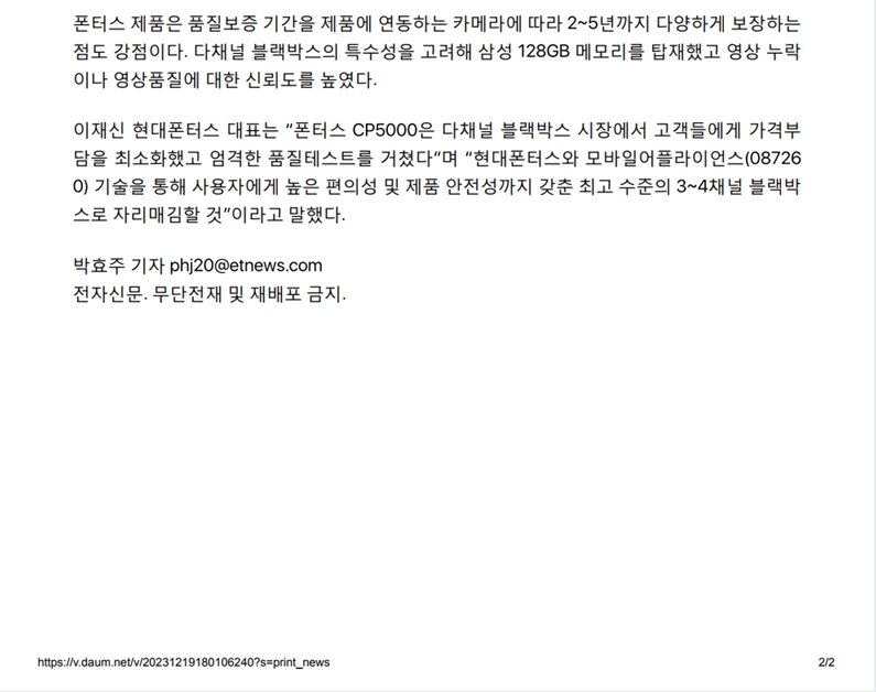 [언론보도] [2023 상반기 인기상품]브랜드우수_현대폰터스_폰터스 CP5000 - 전자신문