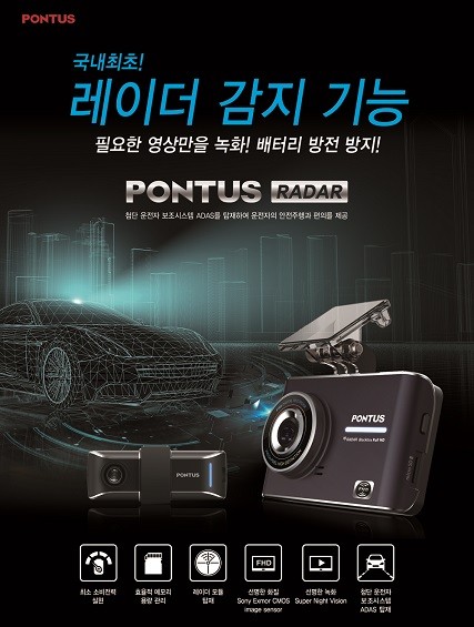 폰터스에서 국내 최초 레이더 감지 기능이 있는 블랙박스를 출시했다. 필요한 영상만을 녹화하는 블랙박스 ‘RADAR’는 배터리 방전 방지 기능까지 장착됐다. 차량의 불필요한 영상 녹화를 차단하고 효율적인 메모리 관리에 힘써, 최소 소비 전력을 실현시키는 것이다.