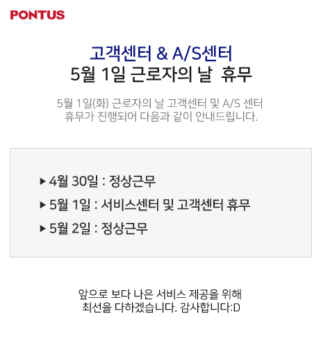 [공지사항] 5월 1일(화) 근로자의 날 고객센터 및 A/S센터 휴무안내