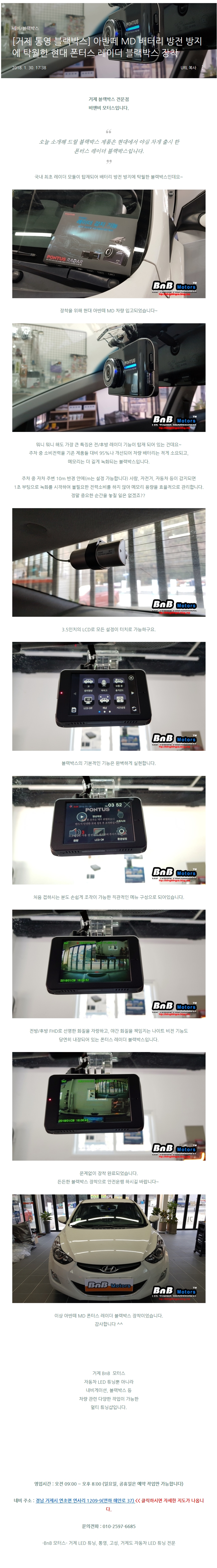 [거제 비앤비 모터스] 폰터스 블랙박스 RADAR 장착리뷰